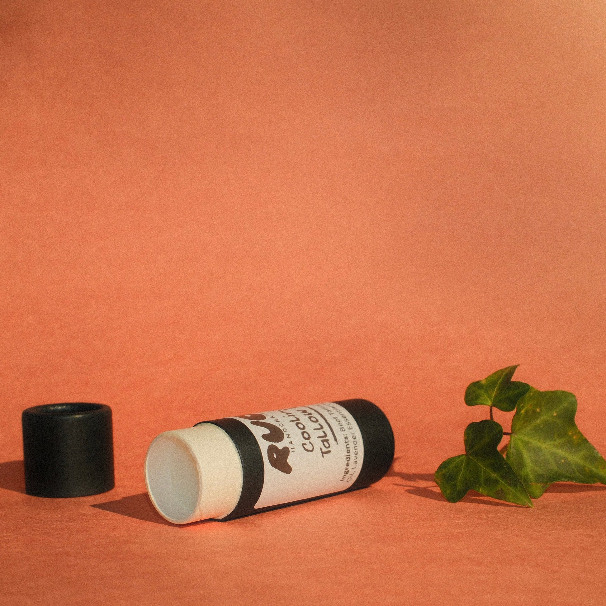 Cooling Relief Tallow Lip Balm by Ruomo helps replenish essential lipids and protect against further moisture loss.